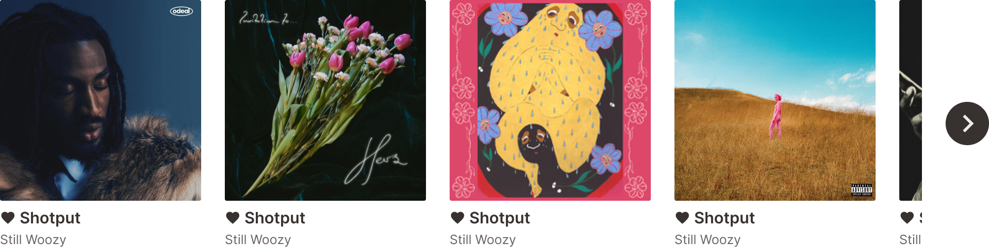This is also where the smallest size of the icon-brand-button was created, as the queue requires a miniscule overlay of this button on top of the track image cover. Since this button is only 20 x 20 px and thus doesn’t following WCAG guidelines for target size, I made sure that the target area was the size of the entire image cover, making it compliant with Criterion 2.5.8 (Target Size Minimum).