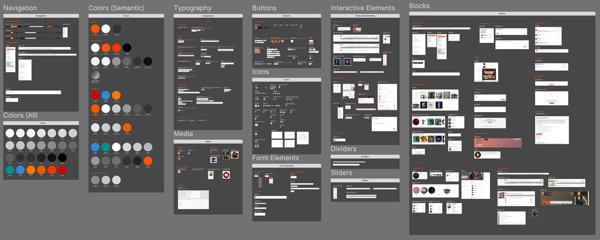Our color, spacing, and typography foundations gave way to our components—a set of distinct elements and blocks that made up the interface. We created a few components collaboratively, such as buttons, image containers, and form elements, but I was most interested in delving into the parts of SoundCloud that made it a music-sharing platform.